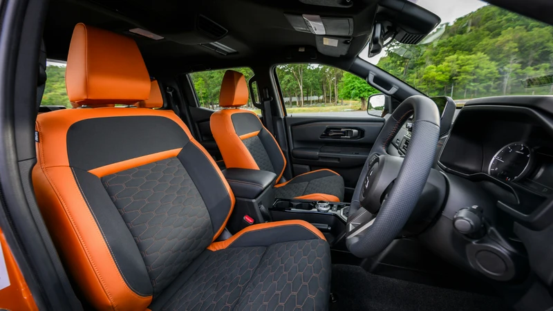 Pensando en el uso laboral de la L200, la marca ha diseñado los asientos ofreciendo mayor soprote en la parte inferior de la espalda, mientras que el punto de la cadera se ha movido 20 mm hacia arriba en comparación con el modelo anterior y se ha adoptado una postura erguida para mejorar la visibilidad. También se ha mejorado el acceso a la cabina al ensanchar la apertura de las puertas.