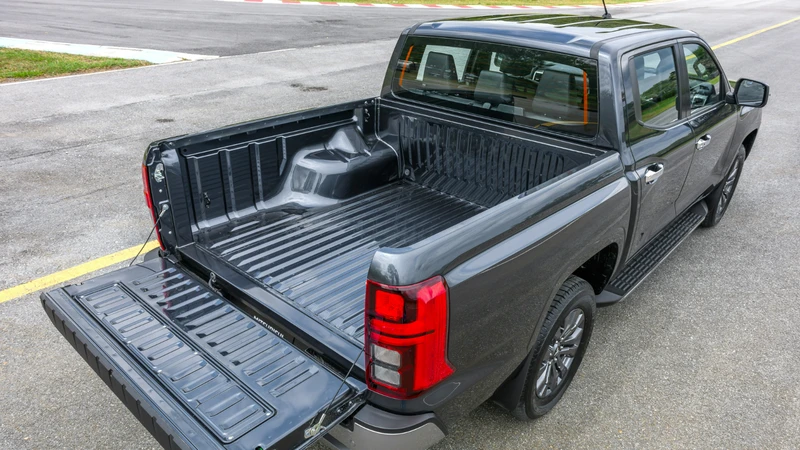 En la zaga aparecen nuevas luces traseras en forma de T que resaltan el ancho. Como novedad se suman varios elementos funcionales, como manillas más grandes, pisaderas laterales más anchas y con drenaje de agua, una barra de estilo en techo y laterales de la caja, y un pequeño escalón trasero que facilita el acceso a la zona de carga.