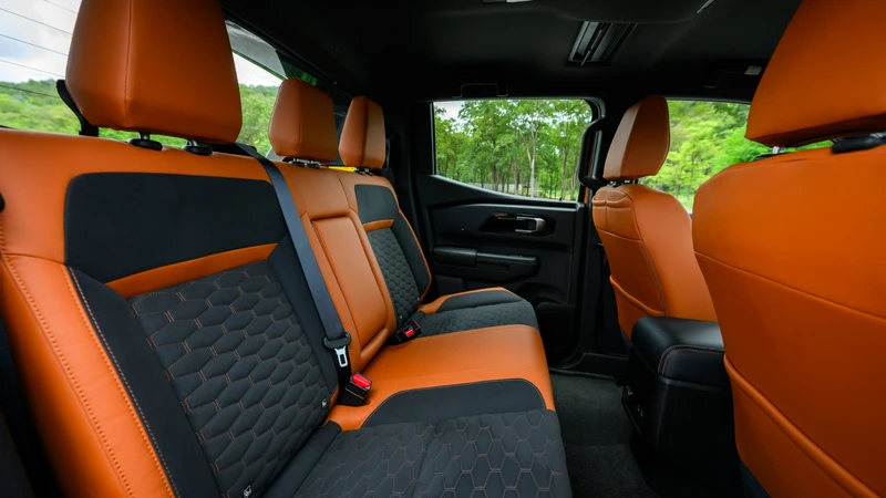 La suspensión trasera utiliza un sistema de ballesta más ligero con amortiguadores más gruesos, que según la marca proporciona una mayor comodidad de conducción sin sacrificar su capacidad de carga.