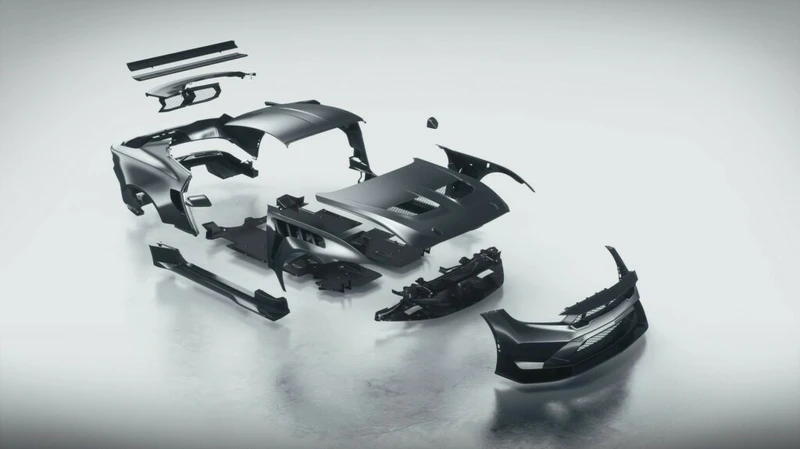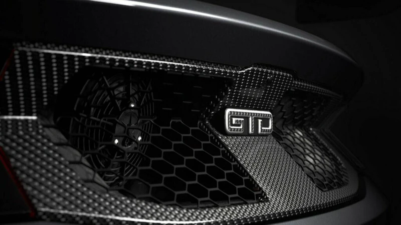 - Una dieta rica en fibra de carbono y piezas aerodinámicas. Estas incluyen la cubierta del chasis, los fenders delanteros, el capot, la tapa del maletero, los faldones, difusores, alerón (ajustable hidráulicamente) y techo.